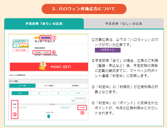2. 期間中に合計5,000P以上の「ハロウィン」対象広告を利用する