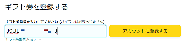 早速、記載されたAmazonギフト券番号をAmazonのアカウントに登録することにしました。