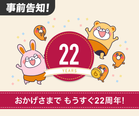 おかげさまでもうすぐ22周年!