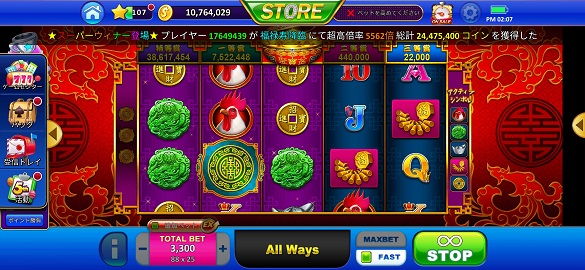 - ワンスピンの最高配当:3,101,034枚 ベット数6,600枚時の記録