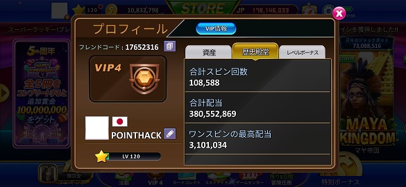 なので、ギャンブルが好きな方であれば、初回100円課金時にもらえる450万枚のメダルで高ベットし、高配当に当選させることが出来れば数日でレベル120になることは可能です。われこそはギャンブル王だという方はこの方法でチャレンジしてみてはいかがでしょうかね。