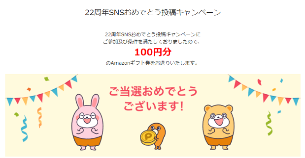 2021年12月に22周年を迎えた【ポイントタウン】ではキャンペーンが開催されていました。