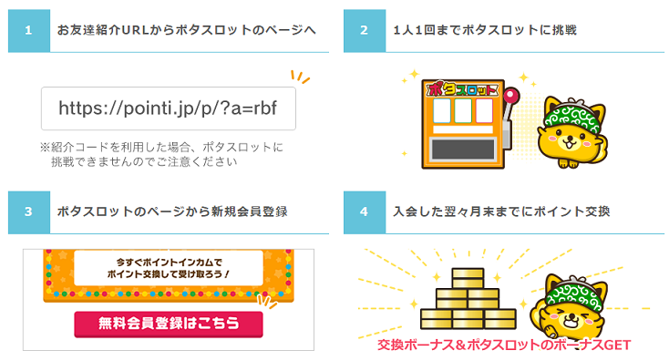期間中にお友達に紹介されてポイントインカムに登録すると、「ポタスロット」に挑戦できます!
