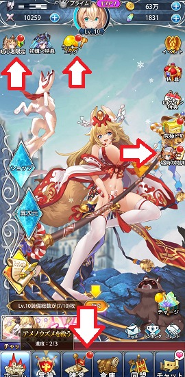 基本的にはホーム画面で赤丸があるところをタップしてアイテムなどを入手しながら「ミッション」を進めながらゲームのシステムや進め方を理解していくことになると思います。