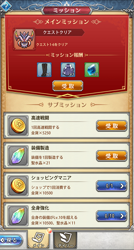 ミッションをクリアするとアイテムが貰えるので、ミッション内容を確認しながらゲームを進めると良いでしょう。