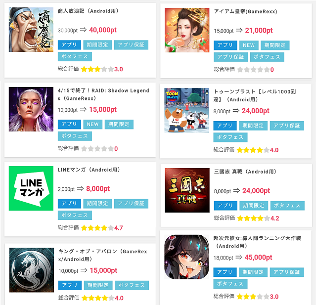 その為、還元率は高く設定されているので、ゲーム等でポイントを貯める時間が無い方は【ハピタス】への登録が1番だと思います。