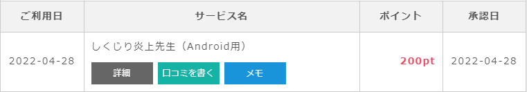 「しくじり炎上先生」200ポイント(20円相当)です。ゲーム内容は簡単な問題を解くだけなので簡単なのですが、問題ごとに動画広告が発生する面倒なアプリですが、今回のようなキャンペーン時には重宝する広告です。