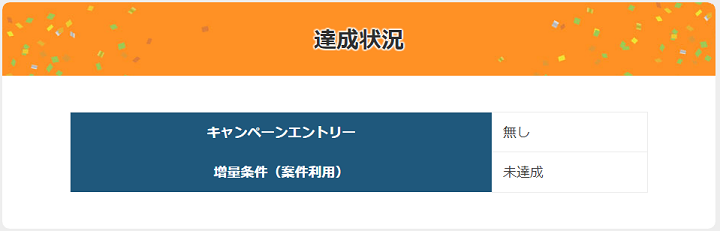 - トラッキング漏れ(計測漏れ)により審査中にならない場合は、増量キャンペーン対象外となります。