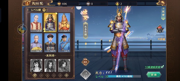 まだ、ゲーム内容を解説できるほどプレイしていませんが、育てる武将は1人に集中したほうがいいみたいです。