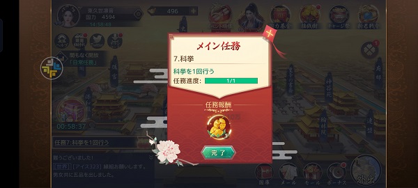目指す国力は画面左上、国力1452となっているところを500万(1000万)にすることで報酬がもらえます。