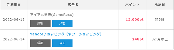 その為、還元率は高く設定されているので、ゲーム等でポイントを貯める時間が無い方は【ハピタス】への登録が1番だと思います。