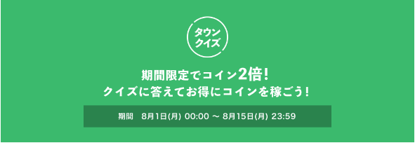 通常のポイントQでは1問正解するごとに5コイン進呈となりますが、本キャンペーンでは2倍の10コインへアップ!