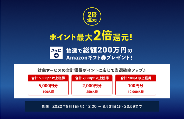 さらに対象サービスの合計獲得ポイント数に応じて、総額200万円のAmazonギフト券をプレゼント!