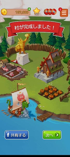 残す村は12ですが、村の建設が進むほど必要なコイン数が増えるのですが、貰えるコインも増えるので、今の所特に苦労することなく進めることができます。