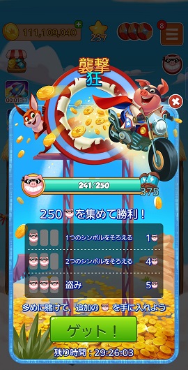 襲撃「狂」はスロットゲームで豚が出現したり揃うとポイントがたまり、スピンが100や200もらえたりしたので、結構頑張ってプレイしてみました。