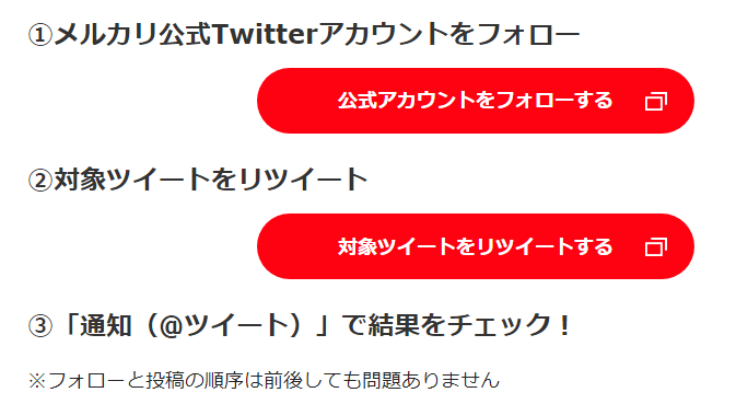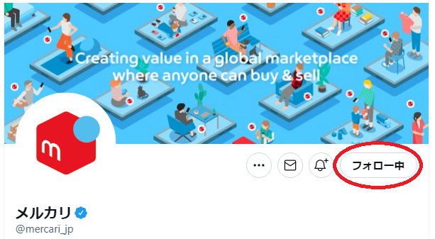 - メルカリ公式Twitterアカウント(@mercari_jp)をフォロー