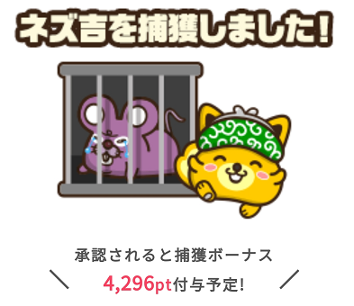 25日までならネズ吉捕獲ボーナスが上乗せされるので利用するなた今がチャンスですよ。