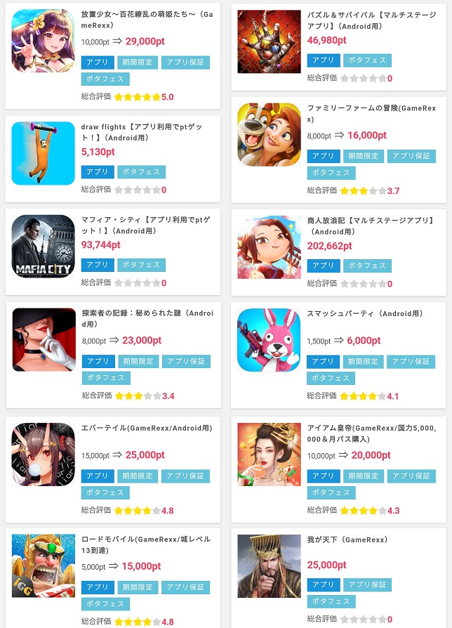 中には条件をクリアすることで40,000ポイント以上もらえるアプリ広告の掲載もあります。