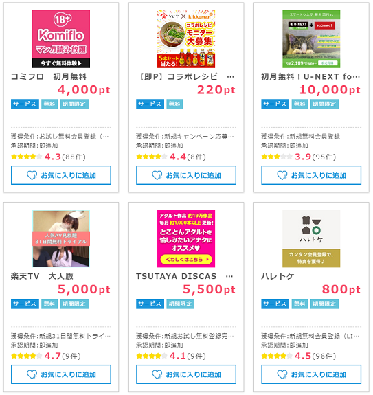 即追加広告が特集されているページからご利用できる広告をいくつか利用して効率よくポイントを貯めましょう。