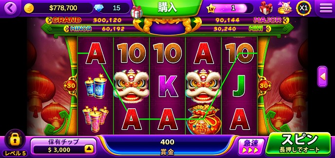 「ゴールデンタイガー」や「スーパーラッキーカジノ」などのスロットゲーム同様のようですので、運の要素も強いですがレベル40ならなんとかなるでしょう。