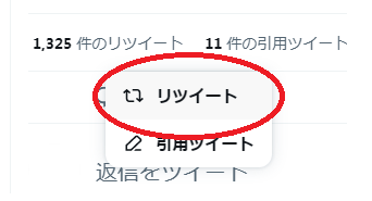対象ツイートの下部「⇔」をクリックします。