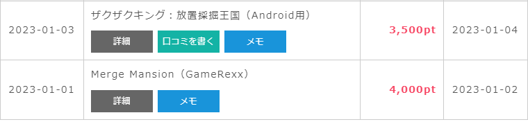 ※ポイントインカムにまだ登録されていない方であれば、2023年1月は入会キャンペーンが開催されており、入会+ポイント交換でAmazonギフト券1,000円分がもれなく貰えるのでMerge Mansionをクリアしてポイント交換することで結果的に1番稼げますよ。