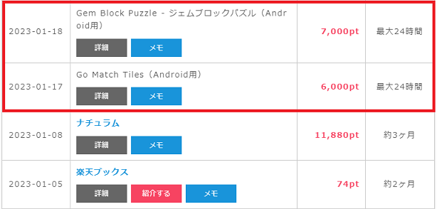 ※ポイントインカムにまだ登録されていない方であれば、2023年1月は入会キャンペーンが開催されており、入会+ポイント交換でAmazonギフト券1,000円分がもれなく貰えるのでMerge Mansionをクリアしてポイント交換することで結果的に1番稼げますよ。