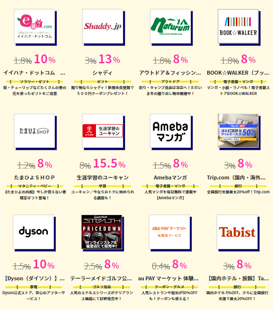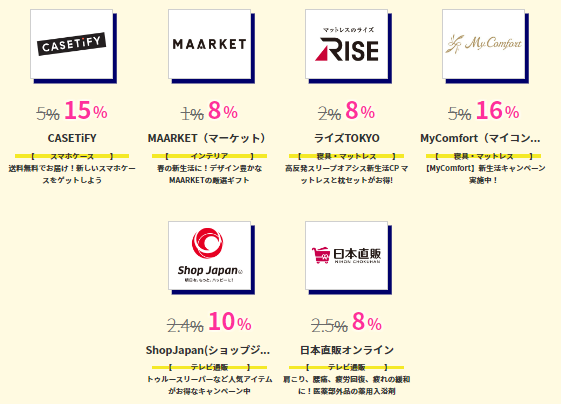 それでも、これだけ多くのショップの還元率が大幅にアップしているので、上手に活用してお得にショッピングしましょう。