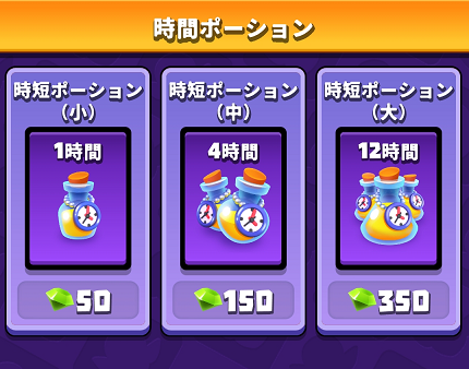 チュートリアルで、時短ポーション(小)が2つもらえますが、なるべく後半まで使用は待ちましょう。