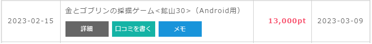 ポイントインカムに掲載されている【金とゴブリン】は、30日以内に鉱山30到達で13,000ポイント(1,300円相当)貰える案件として掲載されていました。