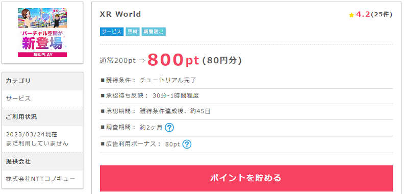 ポイントを貯めるをクリックすると「XR Wold」のページにアクセスします。
