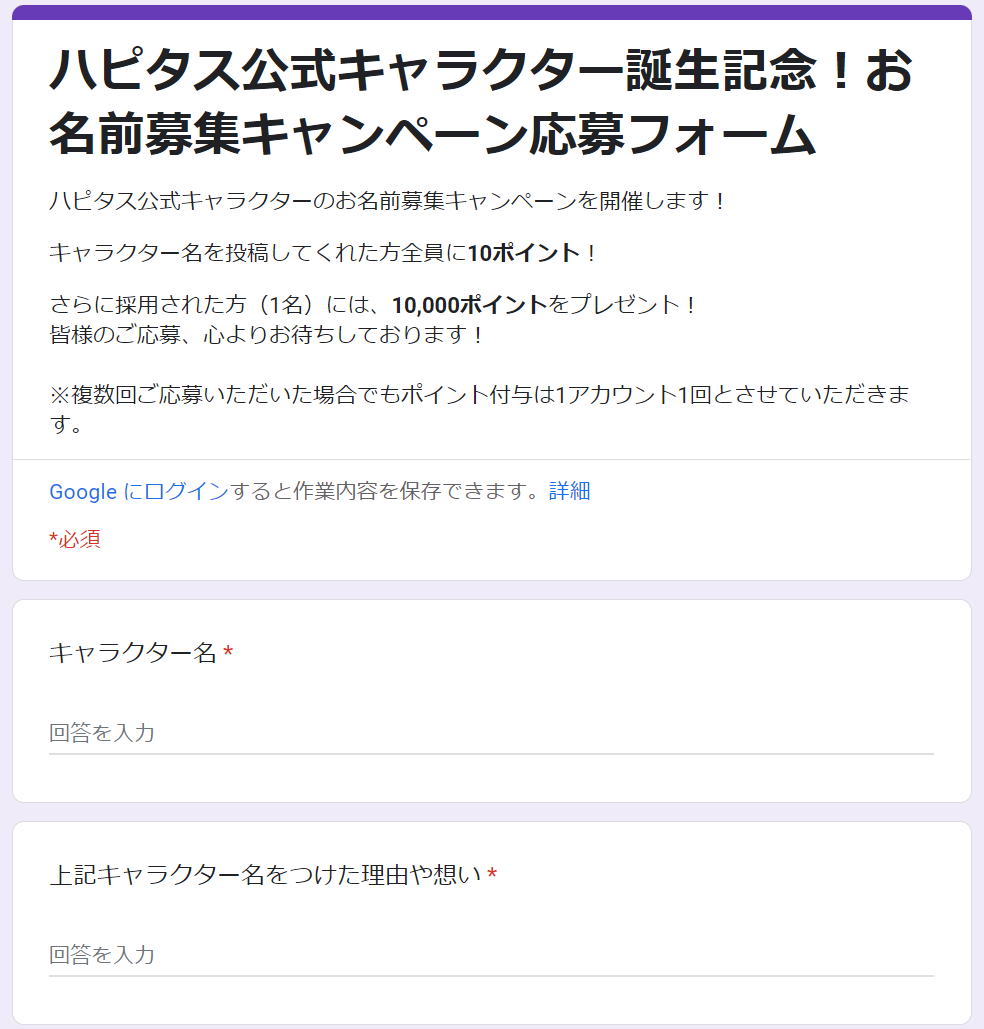 ハピタス公式キャラクター誕生記念お名前募集キャンペーン内容