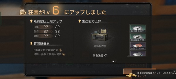が、初日に頑張れば2日目以降は1日30分程度プレイするだけで荘園レベル6に到達できます。