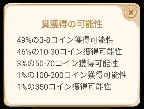 エキストラボーナスでは、上の確立でコインがもらえます。