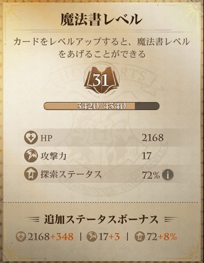 入手したカードは、重複カードを強化します。すると魔法BOOKのレベルが上がります。