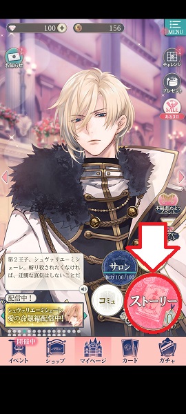 - 1日1話(5ストーリー分)の無料チケットがもらえるので、ストーリーをすすめる。
