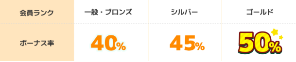 じゃあ、ゴールド以外の会員ランクだとどれだけのボーナスがもらえるかと言うと