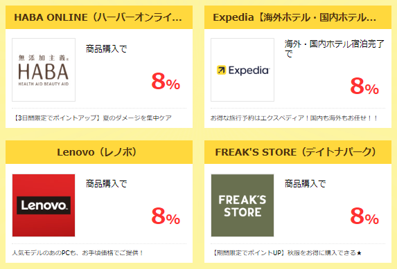 ハピタスデー 対象ショップすべてが【8%以上】還元!内容