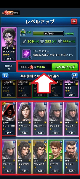 レベルアップに必要な英雄は
