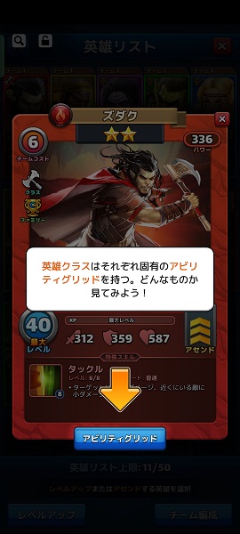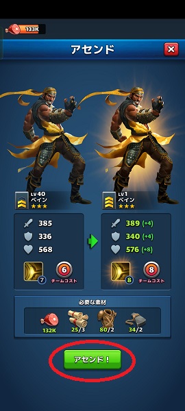 レベルアップ&アセンドで英雄を強化
