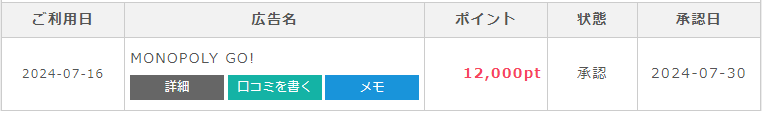 MONOPOLY GOは多くのポイントサイトに広告が掲載されています。私はポイントインカムを経由しましたが、ポイントサイト【モッピー】の方が断然お得なので、これからプレイされる方はモッピー経由がおすすめ。