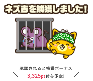 肝心の捕獲ボーナスは3,325ポイント(332.5円相当)と捕獲ボーナスとしてはまずまず。