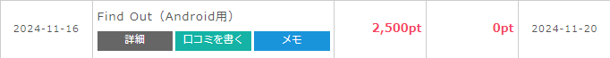 Find Out 星450個獲得まで5日 250円GET