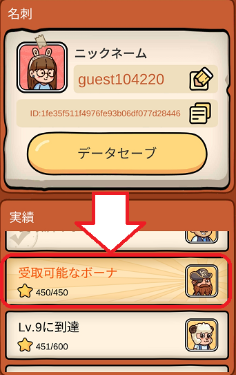 名刺の下部にある実績で星450個獲得ボーナスを取得したら、即ポイントが承認されます。