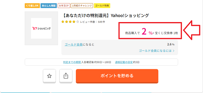 そんな、良く分からない改悪をした結果、それほど利用者が多くなかったYahoo!ショッピングの利用者が激減したのかわかりませんが、ハピタス経由でのお買い物で還元されるポイントが通常1%の所、期間・対象者限定ではありますが、1.5%だったり2%還元など増えていることがあります。