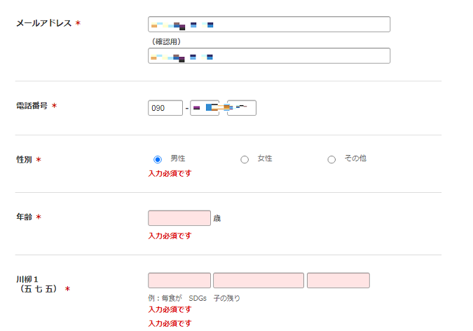 個人の情報と川柳を入力するだけですので、川柳さえすぐに思いつけば数分で応募完了です。