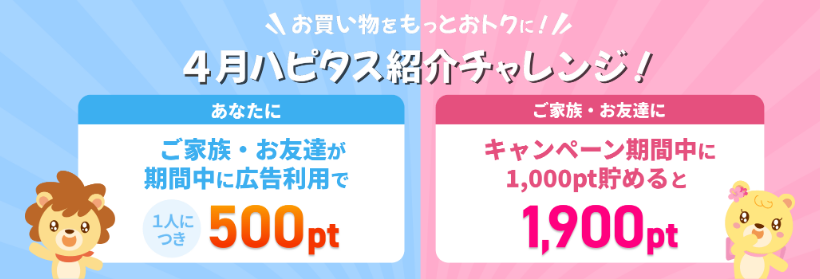 以前はあまり紹介キャンペーンを開催していないかったハピタスですが、ココ数ヶ月は紹介キャンペーンを積極的に開催しています。