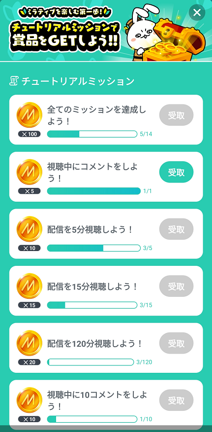 「Mirrativ 7日以内にチュートリアル完了」で8,000ポイント(800円)もらえます。