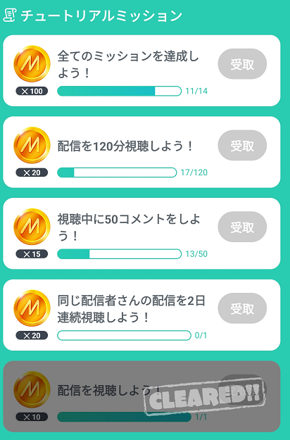 これも、配信者の動画を垂れ流すだけですので、テレビを見ながらやパソコンやりながらスマホを放置するだけですので、時間があれば簡単にクリアできます。
