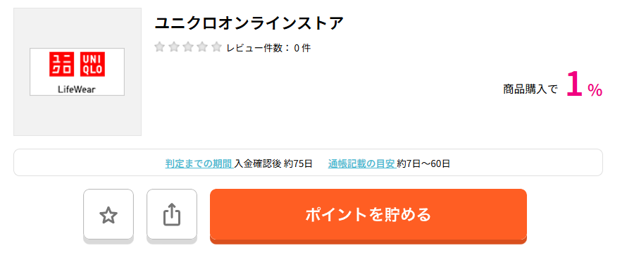 そこで登場するのが「ハピタス」です。ハピタスを経由してユニクロオンラインストアで買い物をするだけで、購入金額の1%前後(時期により変動)がハピタスポイントとして還元されます。